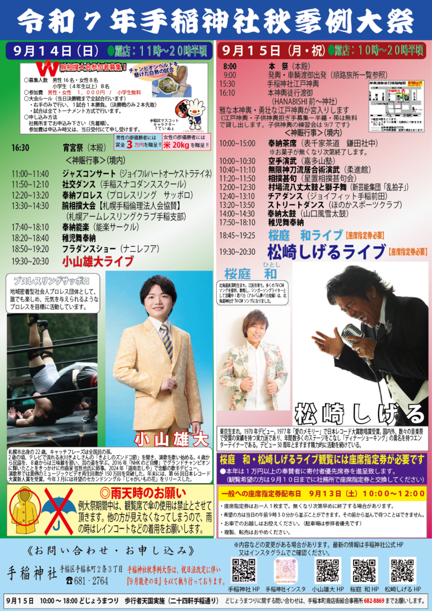 日頃から、お世話になっている氏神様 手稲神社さんの秋季例大祭が9月14、15日と開催されます。